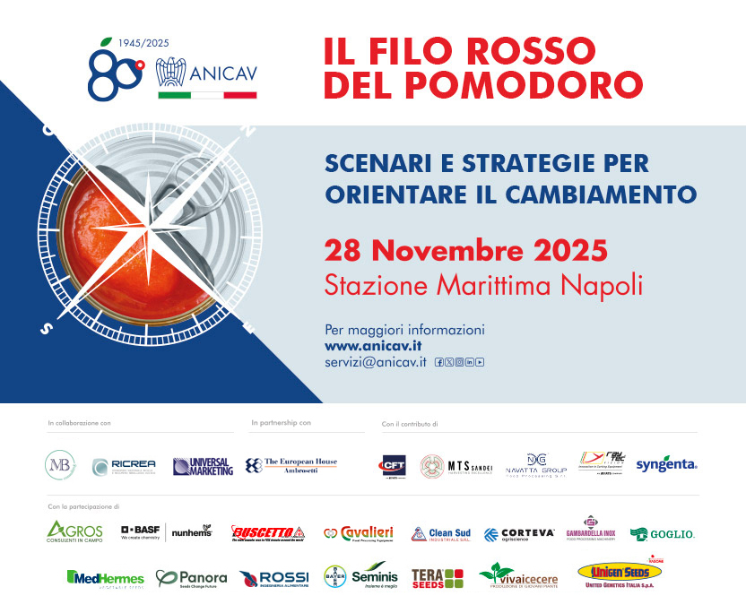 “Scenari e strategie per orientare il cambiamento” è il tema scelto per questa giornata nel corso della quale verrà presentata un’analisi di scenario del comparto del pomodoro da industria realizzata per ANICAV da TEHA Group – The European House Ambrosetti cui seguirà un dibattito tra importanti protagonisti della filiera.